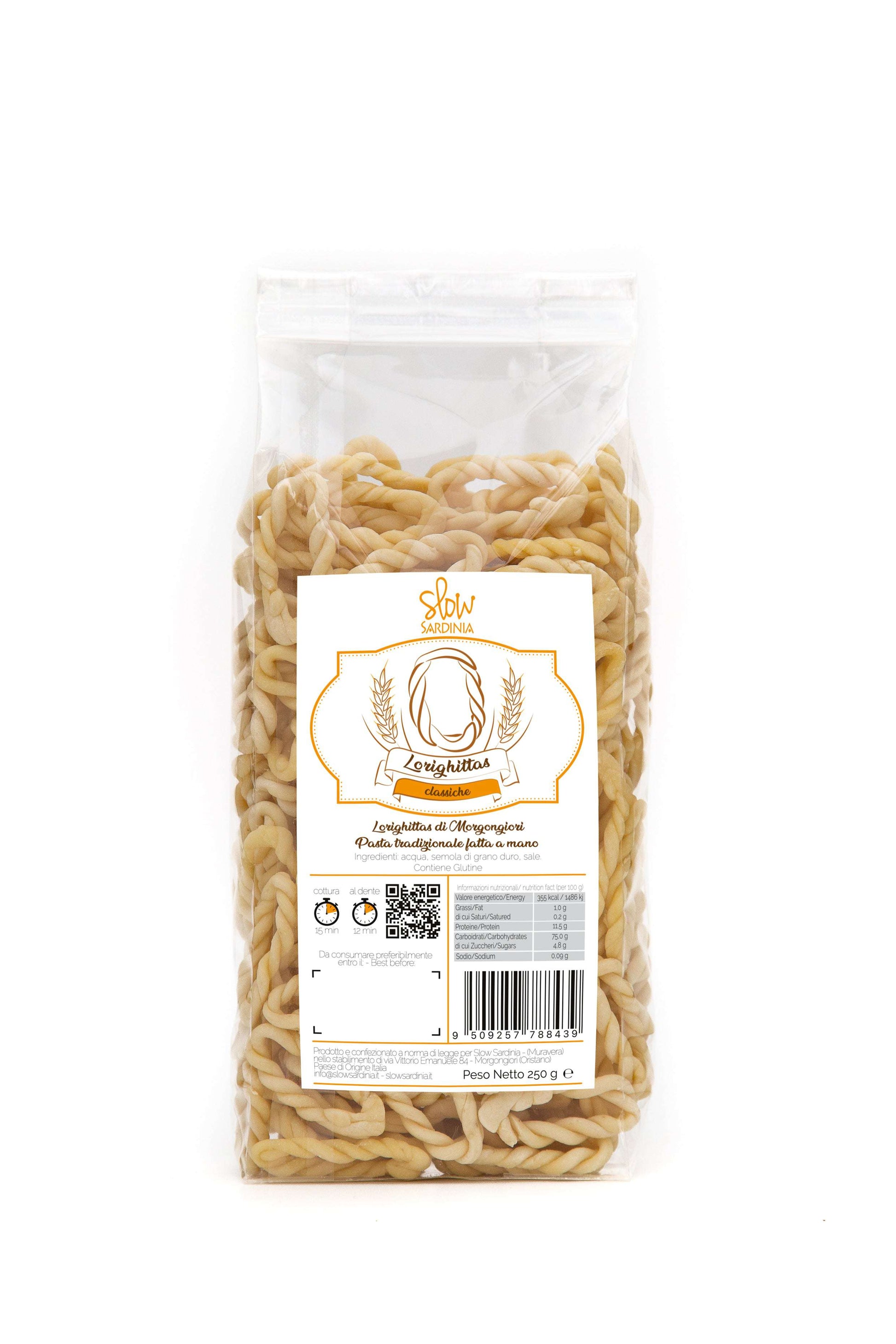 Pasta tradizionale della Sardegna, fatta a mano secondo antica ricetta. Unica nel suo genere, viene prodotta nel paese di Morgongiori (provincia di Oristano) da abili artigiane con semola di grano duro certificato 100% Sardegna. Filiera corta.